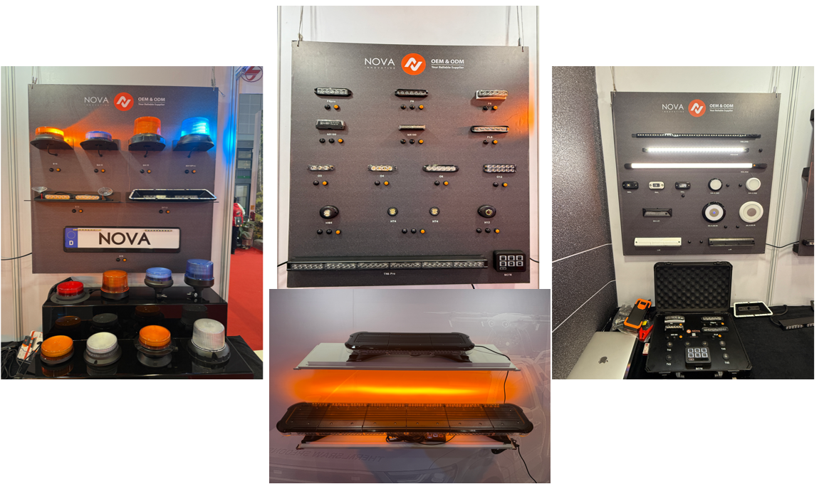 नोवा व्हीकल ने अपने प्रमुख आपातकालीन चेतावनी प्रकाश उत्पाद प्रदर्शित किए, जिनमें शामिल हैं: